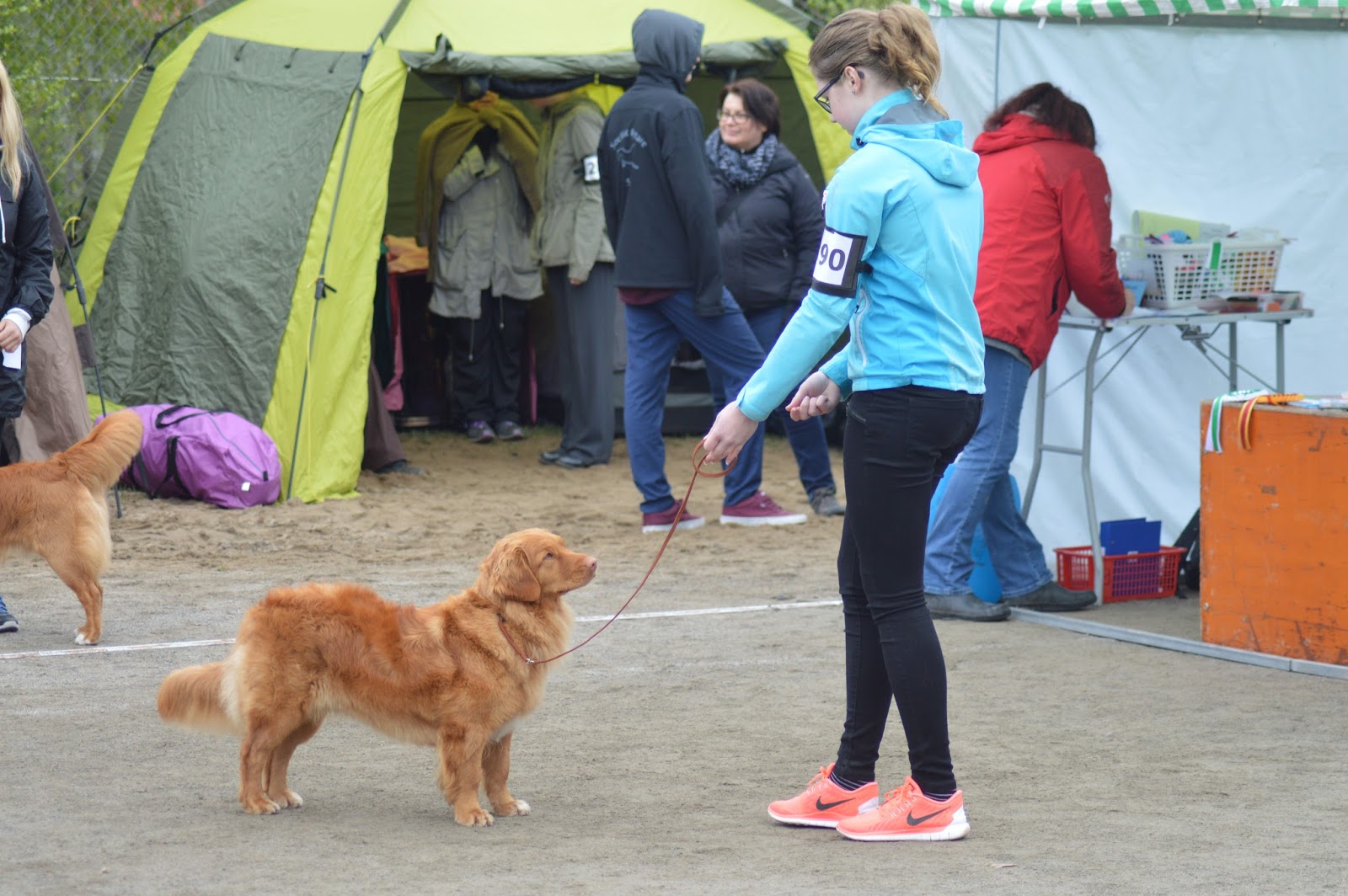Novascotiannoutajia oli vain kolme, joista Fani oli ainoa narttu. Kun tollerit sitten alkoivat, tuntui, kuin en olisi kehässä käynytkään. Niin nopeasti se meni. Ei se tuomari kauaa Fania katsellut, kun antoi suoraa H:n ja paremmalle urokselle ROP:n. Fani oli vähän muissa maailmoissa, tottelihan se nyt jotenkuten, mutta ei oltu kyllä ainakaan täydessä terässä. Siitä puuttui taas se ilo ja innostus, mikä mätsäreissä näkyy. Kuvaajana toimi taas kerran Anni :)